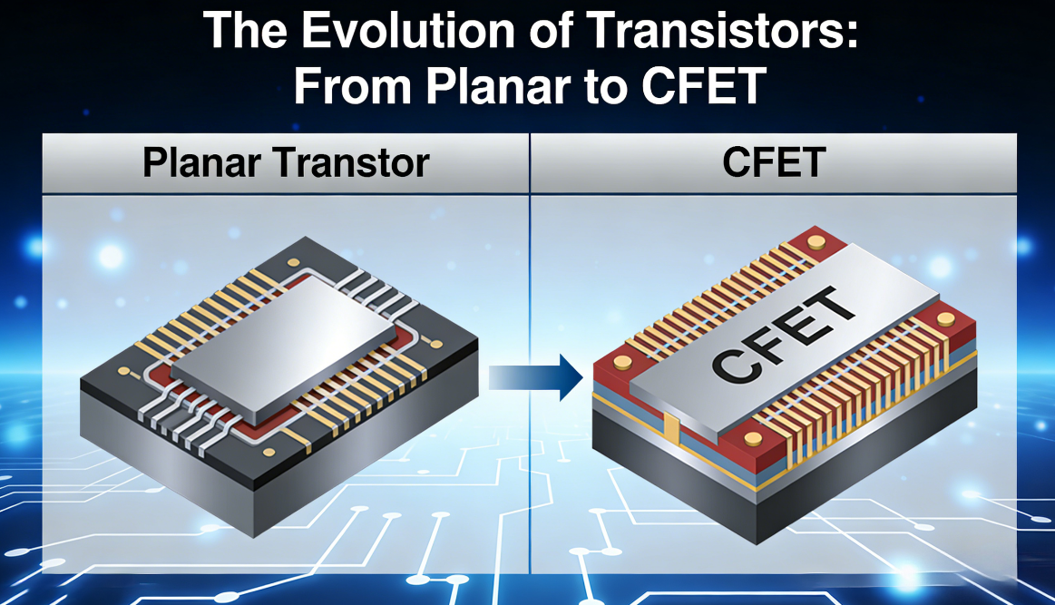 ត្រង់ស៊ីស្ទ័រខ្លួនវាកំពុងឆ្លងកាត់បដិវត្តស្ថាបត្យកម្មពេញលេញ។ពីផែនការ MOSFET ទៅ FinFET ពី GAA nanosheet ទៅ CFET stacking ជំហាននីមួយៗតំណាងឱ្យការផ្លាស់ប្តូរពីការបង្រួមទៅជា ការស្ថាបនាត្រង់ស៊ីស្ទ័រឡើងវិញជាបីវិមាត្រ.នេះមិនមែនគ្រាន់តែជាការកែលម្អបន្ថែមនោះទេ វាគឺជាការកំណត់ឡើងវិញពេញលេញនៃរបៀបដែលបន្ទះសៀគ្វីផ្តល់ដំណើរការ។